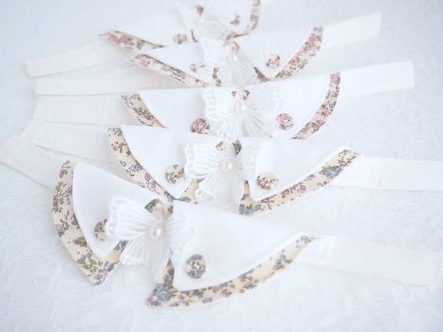 うさぎ用つけ襟です。【受注製作品(完成まで1~3週間)】 上品なリバティー生地を使ったデザインです。 くるみボタンも襟と同じ生地でオシャレです。 上襟がホワイトではなく、くすみカラーなので、胸元が白いうさちゃんに映えます。 首の後ろでマジックテープで留めるだけ! サイズ調整も着脱もカンタンです。 すぐに愛うさちゃんがおしゃれさんに♪首の後ろで ハーネスが苦手な子もつけ襟はOKかも!? 愛うさちゃんと飼い主さんにストレスが少ないおしゃれアイテムです。 耳飾り(リボン)と一緒にコーディネートしても◎ ★同じ生地を使った耳飾りもあります。 →リバティーと引きぞろえ糸のツインテール耳飾り https://rabbisia.base.shop/items/114346189 <サイズ> S⋯約19~23cm M⋯約22~26cm ★後ろのマジックテープで、ある程度調整できます ★ネザーちゃんのような小さい子にはSサイズ、ホーランドロップのような大きい子にはMサイズをオススメします(体格でサイズ感は変わります) ★女の子でマフの大きい子にはおすすめしません。 繊細なデザインのため、お洗濯はお控えください。 気持ちの良いお取引をする為、何かご不明な点がございましたら、ご購入前にお問い合わせください。 お客様都合による返品、キャンセルはお受けできません。ご了承くださいませ。 Rabbisia作品でおしゃれしたあなたの愛うさちゃんを私に自慢してください! インスタ→ #rabbisia のタグを付けて、投稿をお願いします。 ********************************* 新作・出品情報はこちら インスタグラム→ @rabbisia *********************************