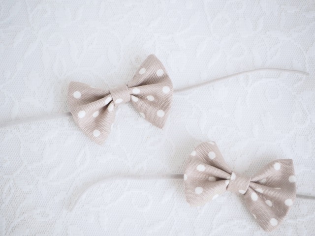 くすみブラウン×水玉のツインテール耳飾り リボン ペット用 アクセサリー