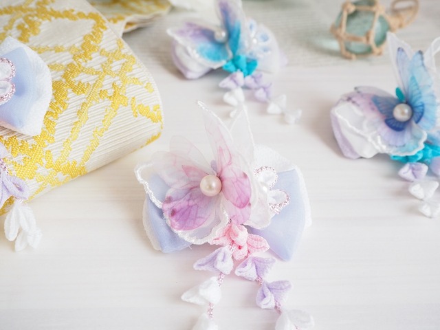 うさぎ用のリボン(耳飾り)です。 蝶のデザインが個々に異なりますが、お届け内容は当方にお任せとなります。 蝶とちりめん細工のお花がかわいらしく、浴衣にピッタリです。 もちろんドレスにも合わせられます。 立体的なデザインで、左右のどちらの耳につけるかで雰囲気が変わります。 お誕生日、お迎え記念日、撮影会などにいかがでしょうか? お花は一越ちりめん(高級ちりめん)を使用し、生地から1つ1つ丁寧にお花に仕上げました。※リボン本体も一越ちりめんです。 たち耳さん、たれ耳さん、どちらでもOKのゴムタイプ耳飾りです。 愛うさちゃんに合わせてゴムの長さを調整できます。 ※耳飾り大きさ:約3.5×5センチ(リボン本体のみ、下がりは含まず) ※再販前(4×6センチ)から少し小さくなりました。 ※ゴムは固定されていませんので、交換が可能です。 気持ちの良いお取引をするために、お手数ですが「SHOPPING GUIDE →購入に関するご注意」をよくお読みになってご購入をお願い致します。 Rabbisia作品でおしゃれしたあなたの愛うさちゃんを私に自慢してください! インスタ→ #ラビシア着用写真 で投稿をお願いします。