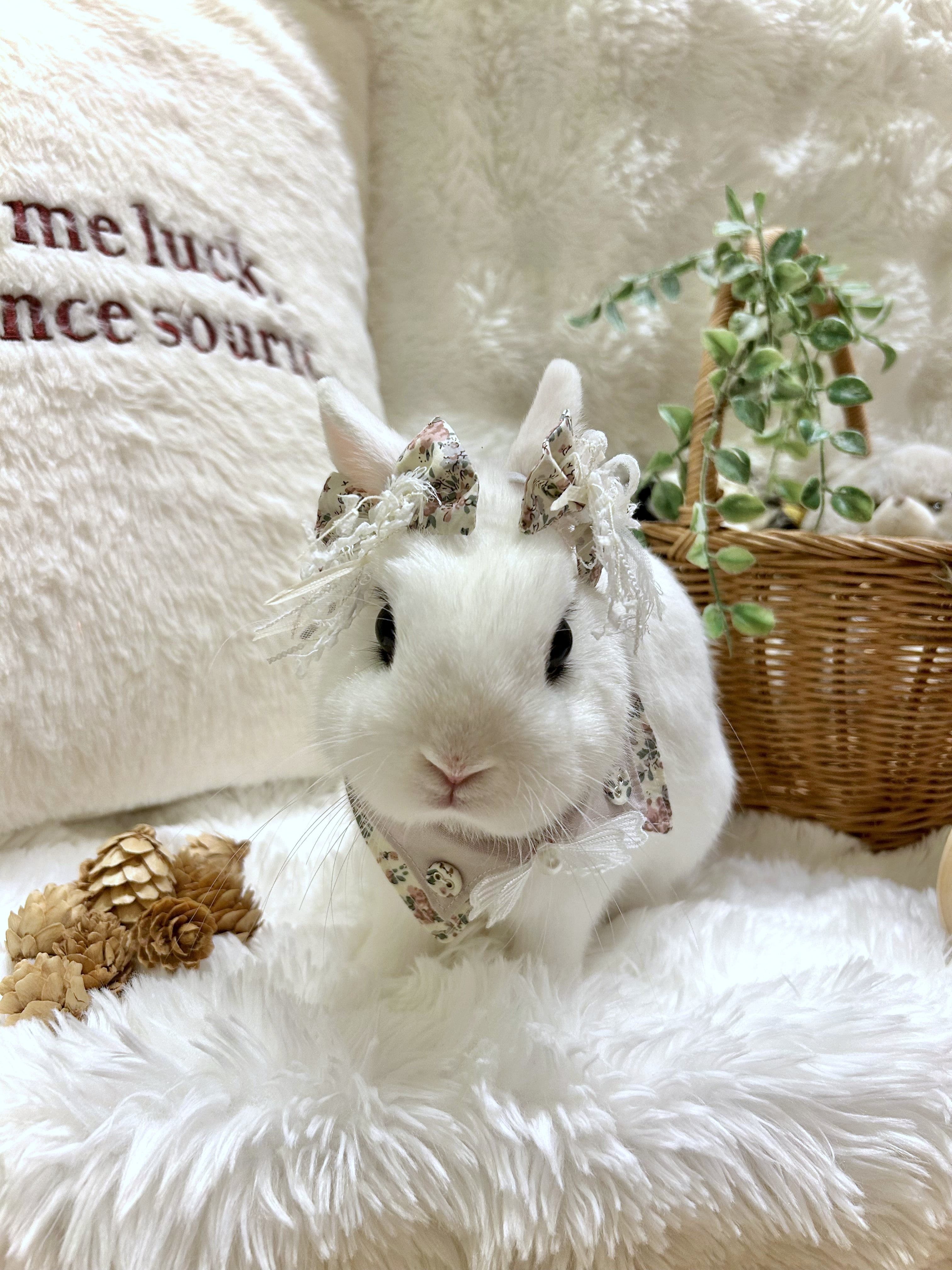うさぎ用のリボン(耳飾り)です。【受注製作品(完成まで1~3週間)】