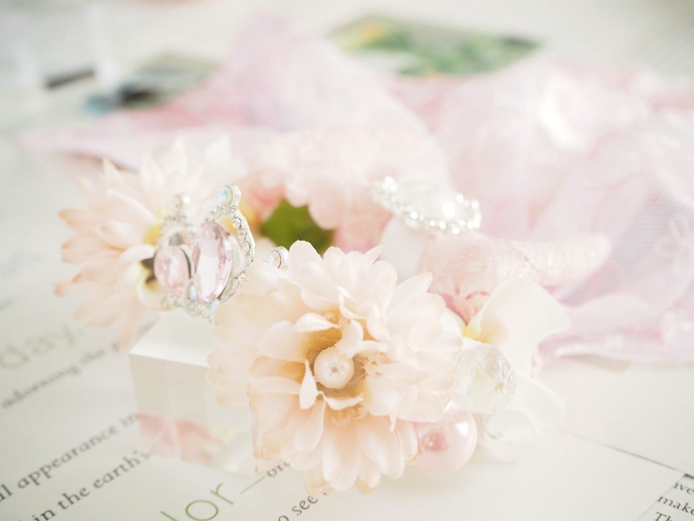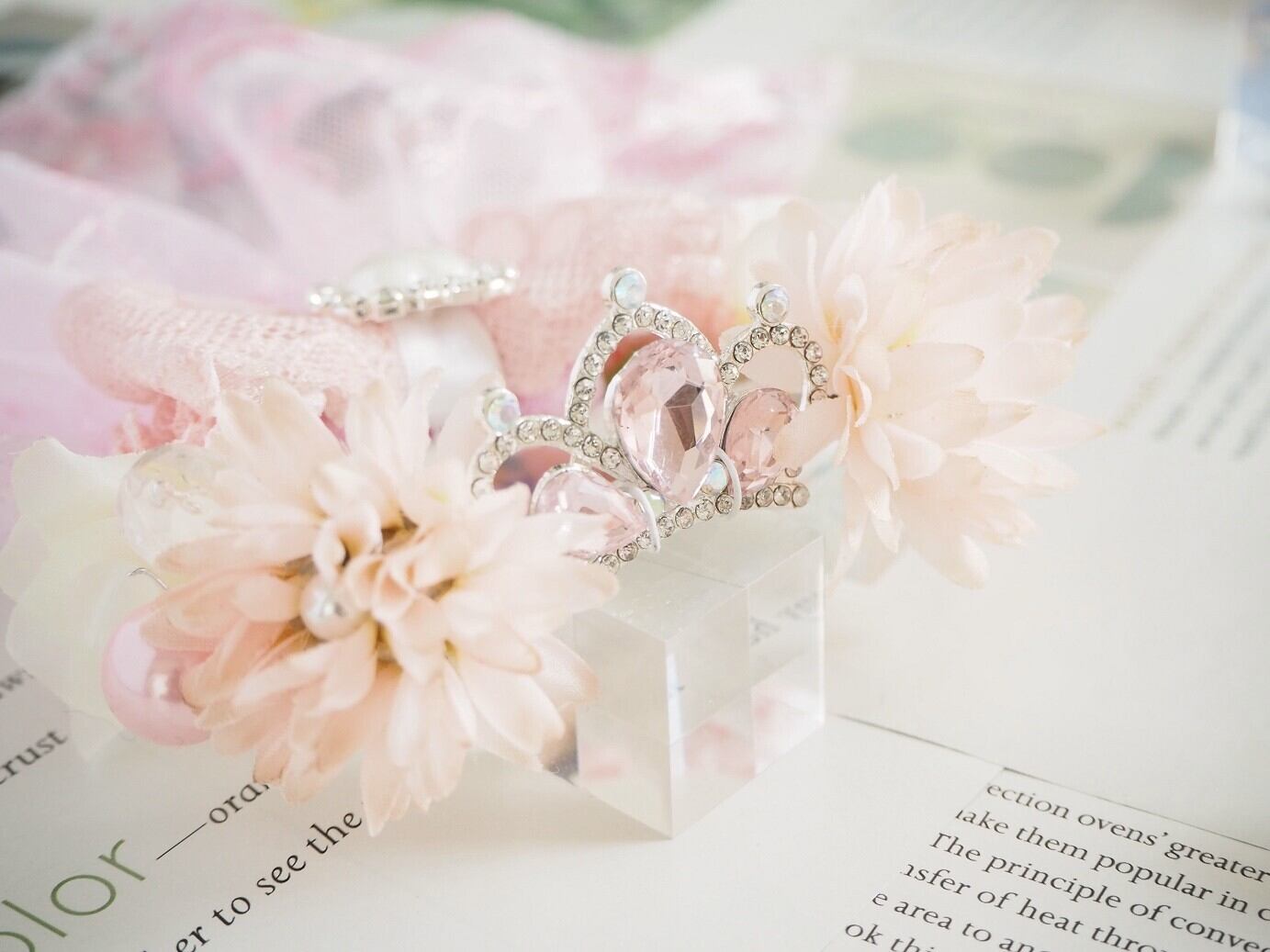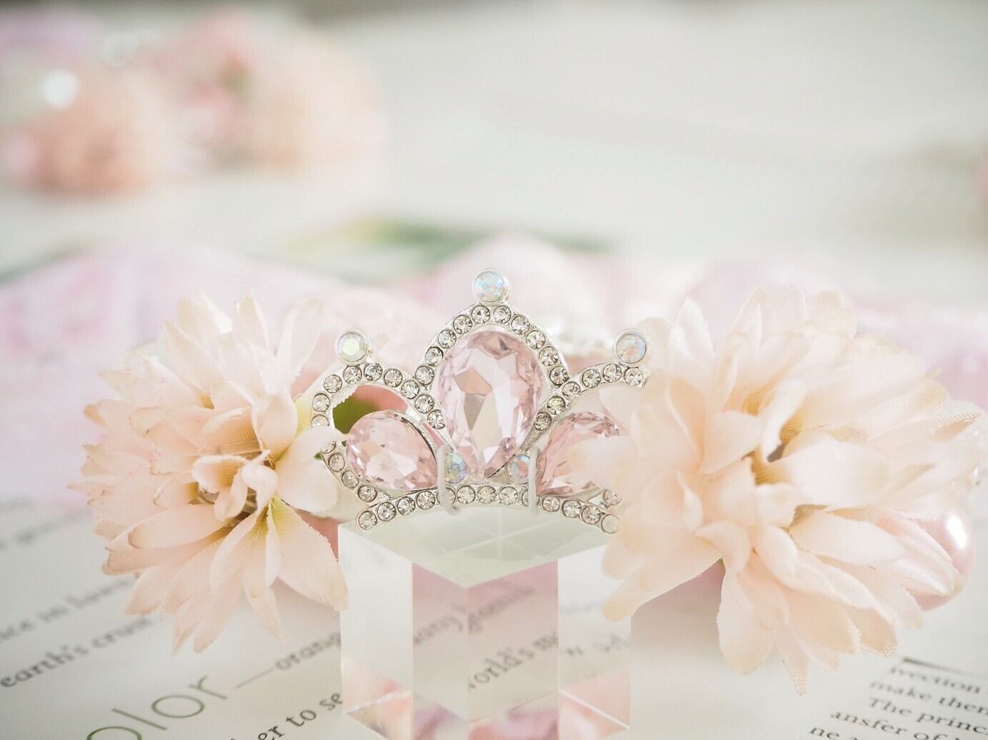プリンセス花冠(ピンク、ショートヴェール付き) うさぎの花冠 Sサイズ