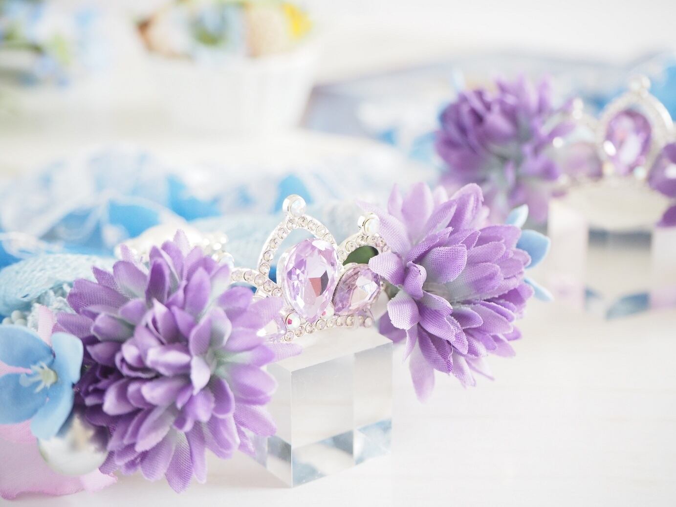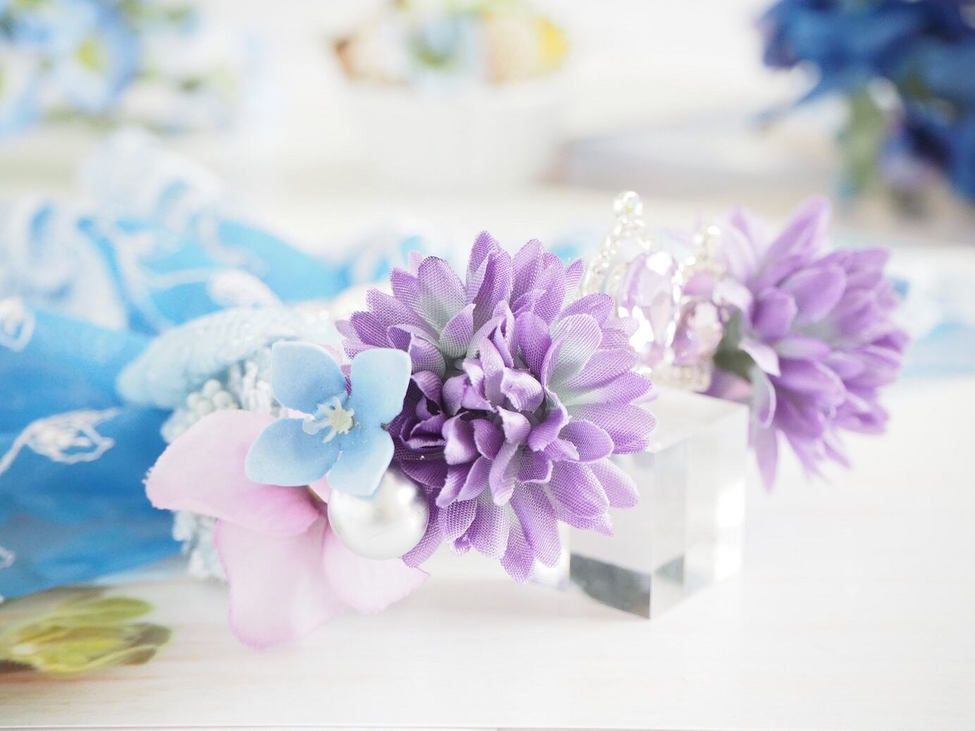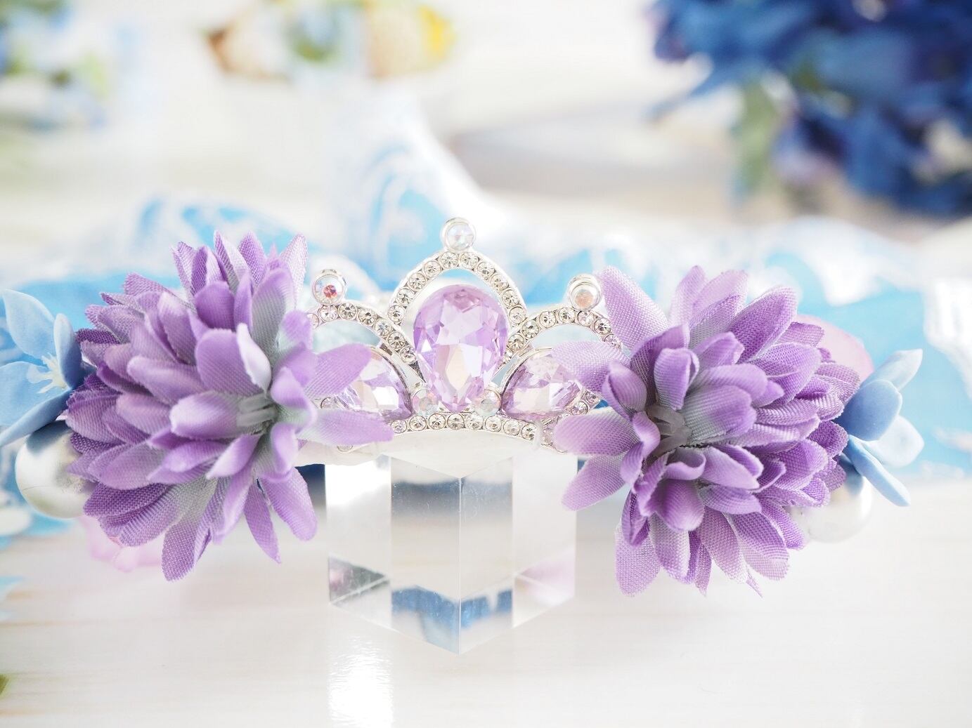 プリンセス花冠(ブルー、ショートヴェール付き) うさぎの花冠 Sサイズ